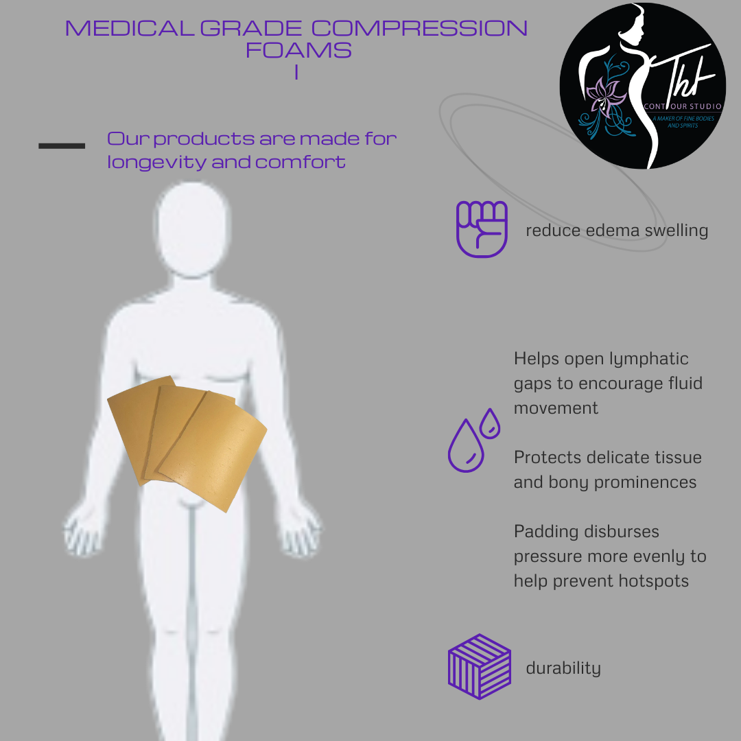 - 1.Liposuction Foam Pads: Our lipo foam compression sheets are an essential postop recovery aid for anyone who has undergone liposuction and abdominal surgeries such as tummy tucks and C-sections. Measures 8'' x 11'' x 0.5''